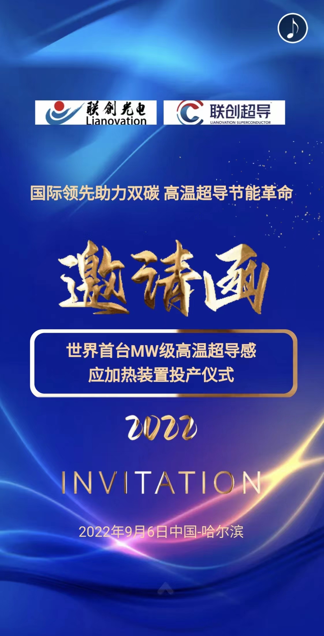 十年磨一劍,一朝試鋒芒!聯(lián)創(chuàng)高溫超導(dǎo)歷經(jīng)近十年的科技長(zhǎng)投,傾心打造的高溫超導(dǎo)感應(yīng)加熱設(shè)備,超導(dǎo)設(shè)備于今年3月完成驗(yàn)收,聯(lián)創(chuàng)高溫超導(dǎo)即將開啟商用的新征程。我們?cè)谇笳鎰?chuàng)新、產(chǎn)業(yè)報(bào)國(guó)的道路上,離不開諸位的鼎力協(xié)助,為感謝諸位對(duì)聯(lián)創(chuàng)超導(dǎo)的信任與支持,公司將于2022年9月6日在哈爾濱舉辦“MW級(jí)高溫超導(dǎo)感應(yīng)加熱裝置投產(chǎn)儀式”。屆時(shí)特邀嘉賓、行業(yè)專家、公司高管將介紹設(shè)備作業(yè)情況及公司高溫超導(dǎo)設(shè)備的發(fā)展戰(zhàn)略,這將是高溫超導(dǎo)近期最受矚目的重要盛會(huì)。為此,我們誠(chéng)摯邀請(qǐng)您來(lái)參與我們的盛會(huì)!
